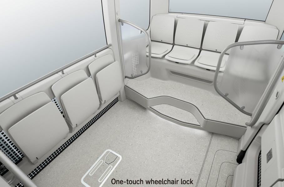 В кабине установлены цифровая «приборка», дисплей медиасистемы и дополнительный тачскрин слева. Четвертый экран позволяет наблюдать за обстановкой в салоне. Автоматизация есть, но только второго уровня: то есть водитель контролирует ситуацию на дороге и держит руки на руле. В Toyota подчеркивают, что e-Palette может стать полностью автономным, и обещают обновлять систему.