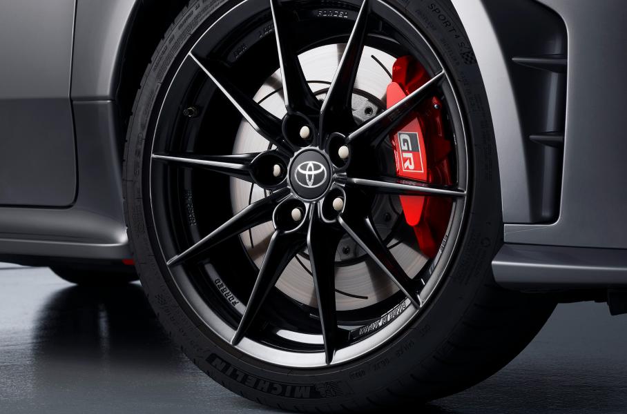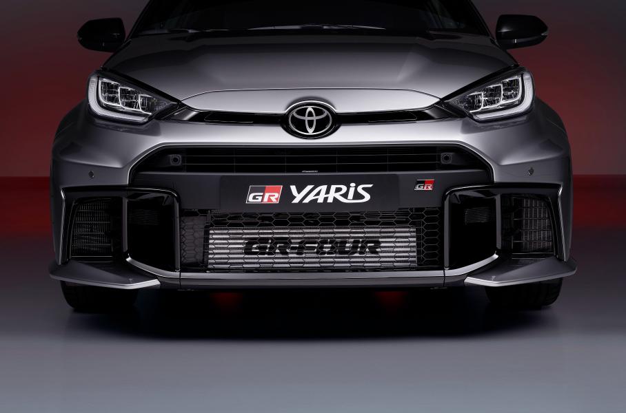 Внешность тоже доработали: GR Yaris обзавелся новым бампером с более крупными воздухозаборниками и новыми фонарями. Кузов стал жестче благодаря увеличению числа точечных сварных швов на 13 процентов и более широкому применению конструкционного клея. Настройки подвески подкорректировали с помощью гонщиков-испытателей, хотя схема осталась прежней: Макферсоны спереди и многорычажка сзади. При этом передние стойки крепятся к кузову бо́льшим числом болтов, что не дает им смещаться при высоких нагрузках на верхние втулки.