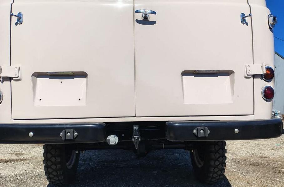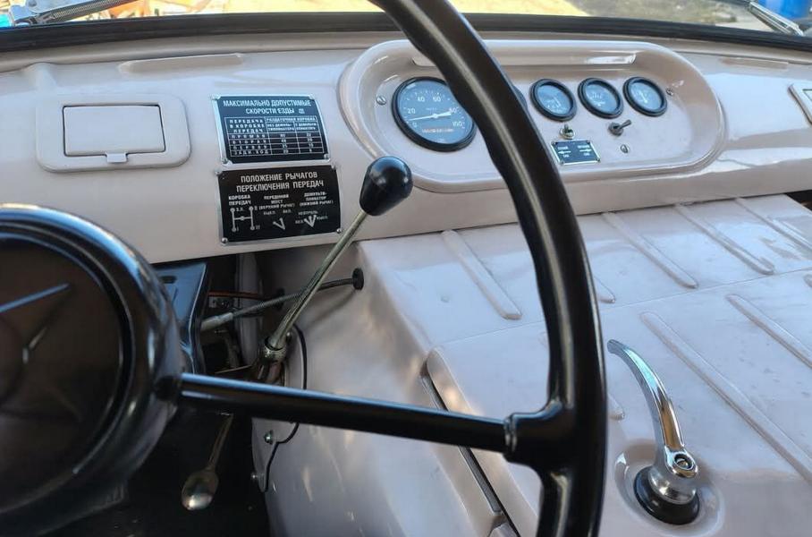 Как можно заметить, кузов совсем другой: справа нет боковой двери, слева иначе располагается топливная горловина, отличается светотехника, логотипы, а также органы управления в салоне. Речь идёт о машине 1960 года выпуска, поэтому передние боковые двери классического типа, хотя на однообъёмниках до 1958 года петли позади створки, а двери открывались против хода движения. Под капотом двигатель УАЗ-450 (2,4 литра, 62 л.с., 149 Нм) в связке с 3-ступенчатой «механикой».