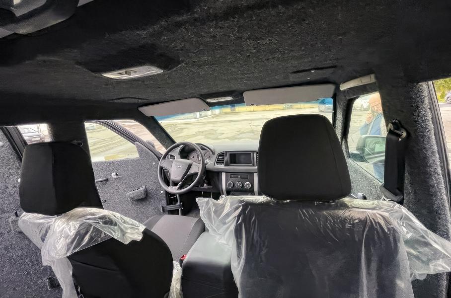 По периметру дверных проемов имеются пулеуловители, перетянутые алькантарой, усилены опоры и петли дверей. Задние барабанные тормоза заменили на дисковые, доработана подвеска. Металлические усиленные колесные вставки позволяют продолжать движение на сдутых шинах. Также в списке дополнительного оборудования — противопожарная система в моторном отсеке и переговорное устройство салон/улица.