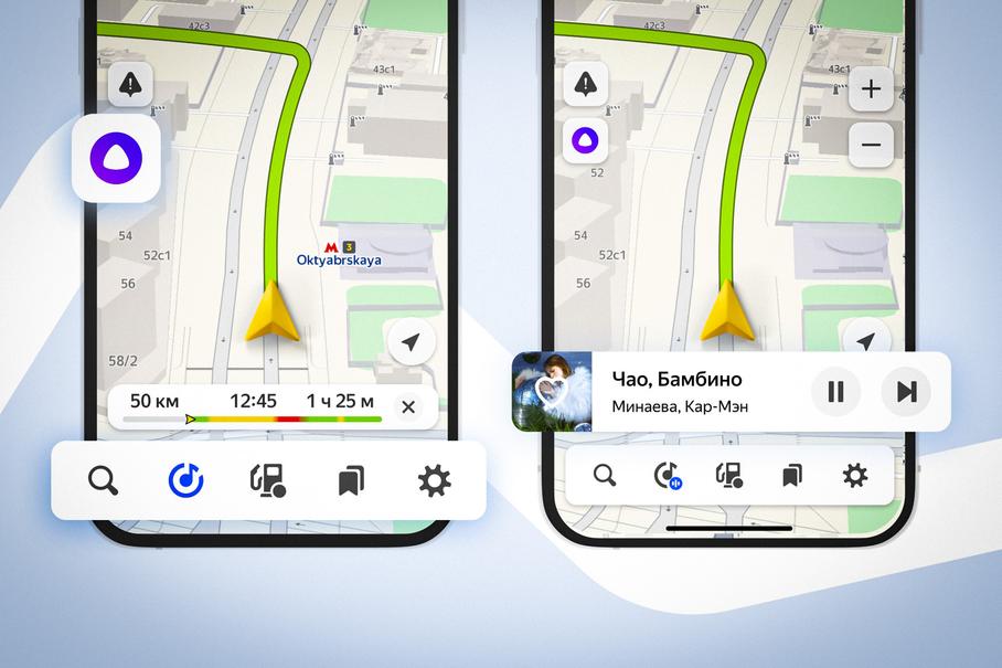 Музыкальные треки теперь можно включить непосредственно в приложении «Яндекс Карты»Нововведение направлено на то, чтобы водитель меньше отвлекался от дороги. Для этого «Яндекс» вводит альтернативный способ включения музыки и переключения треков — можно дать команду голосовому помощнику Алисе. Она умеет включать музыку, ставить трек на паузу, переключать его на следующий. В случае, если нет конкретного запроса, можно просто сказать: «Алиса, включи что-нибудь для дороги».