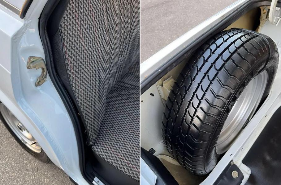 Маркер минимальной эксплуатации — сохранившаяся в багажнике бумажная бирка с обозначением цвета. А вот шины (в том числе запасное колесо) похоже менялись.