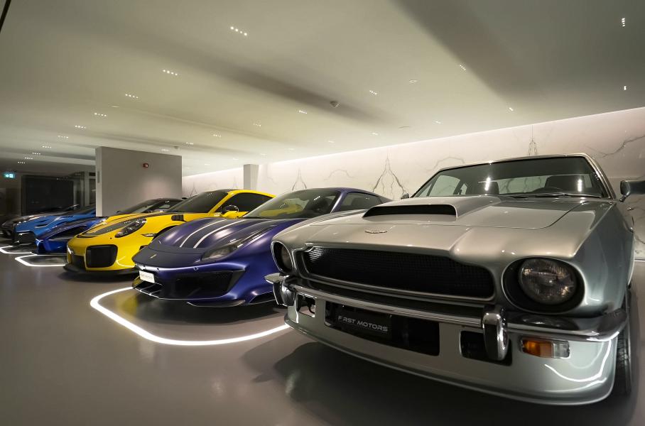 В ролике можно заметить уникальный Aston Martin V8. Аналогичные модели использовали в съемках фильмов про Джеймса Бонда. Кроме того, в собрании есть McLaren Senna, Porsche 911 GT2 RS и Ferrari 488.