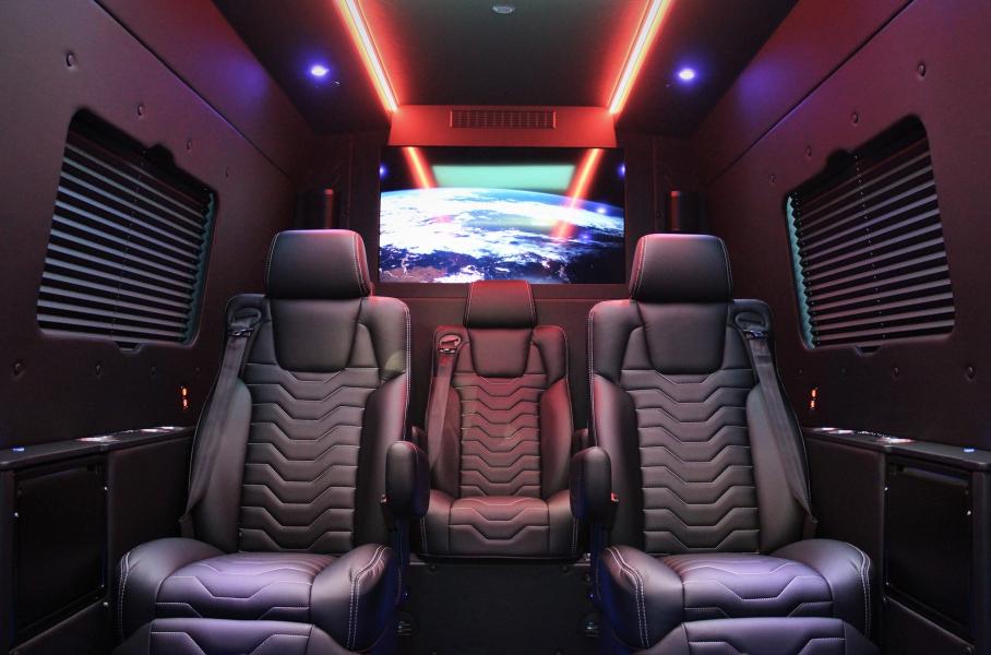 Что-то похожее с Mercedes-Benz Sprinter может сотворить и калифорнийская Lexani Motorcars. Её серия офисов на колесах под названием Sky Captain — это убер-роскошные версии «Спринтера» с оригинальная кожаной отделкой сидений и покрытыми золотом элементами декора. Каждый автомобиль Lexani обещает оборудовать спутниковым телевидением с 55-дюймовой смарт-панелью, игровой приставкой Sony PlayStation 5, планшетами iPad Pro, компьютером Mac Mini и потолком со звездным небом.