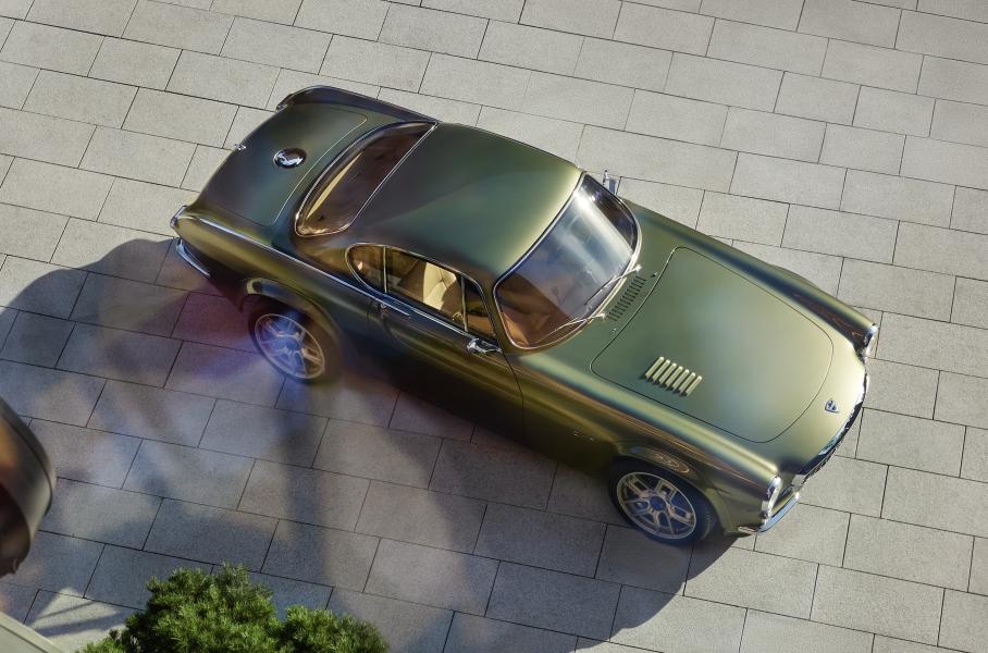 Новая начинка купе скрыта под углепластиковым кузовом. От оригинального Volvo P1800 тут только часть шасси, механизм открывания капота, стояночный тормоз и дворники.