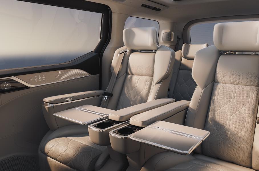 Есть у минивэна панорамная крыша, виртуальная приборная панель, беспроводная зарядка для гаджетов, аудиосистема Bowers & Wilkins с 21 динамиком и проекционный экран, однако опции не уникальны: Zeekr 009 тоже всё это предлагает.