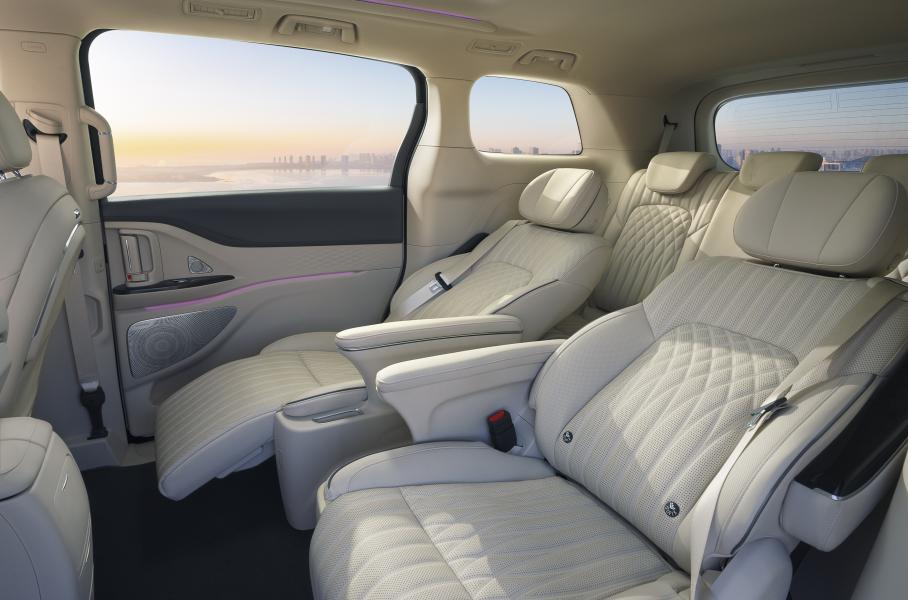 У минивэна независимая передняя подвеска на двойных поперечных рычагах и пятирычажка сзади. Набор оснащения богатый: кресла с вентиляцией, подогревом и массажем, панорамная крыша, трехзонный климат-контроль, светодиодные фары проекционного типа, система ночного видения, аудиосистема Dynaudio с 10 динамиками, а также ионизатор воздуха, аромадиффузор и более 20 электронных ассистентов.