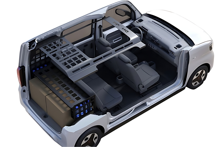 Внутри — 20 разных отверстий под крепленияWuling Zhiguang EV — продукт совместного предприятия SAIC и американского General Motors. У него один электромотор, установленный на задней оси, сдвижные задние двери и четыре сиденья в салоне.