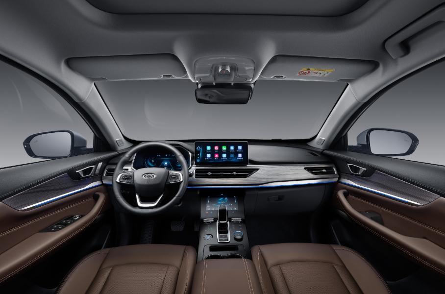 В салоне установлены три экрана: цифровая приборная панель диагональю 12,3 дюйма, дисплей мультимедийной системы на 12,3 дюйма и отдельная восьмидюймовая сенсорная панель управления климат-контролем. Центральный подлокотник с боксом оснащен функцией охлаждения, под центральной панелью есть углубление для беспроводной зарядки мобильного телефона. Из оборудования заявлены двухзонный климат-контроль, «зимний пакет», шесть подушек безопасности, камеры кругового обзора, передние и задние парктроники и система мониторинга слепых зон. Опционально доступны панорамная крыша и атмосферная подсветка интерьера.
