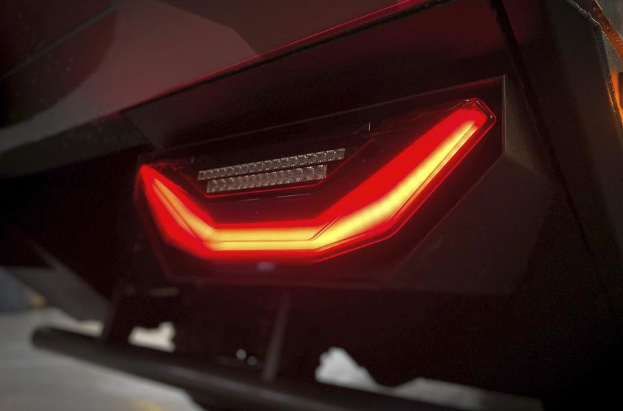 В списке внешних доработок числятся дополнительные «люстры», рейлинги на крыше, складная лестница и 17-дюймовые колесные диски во внедорожник покрышках с внешним диаметром 37 дюймов. Снаружи также имеется доступ ко множеству отсеков для хранения вещей, а для отдыха на природе предусмотрен тент и выдвижной гриль.