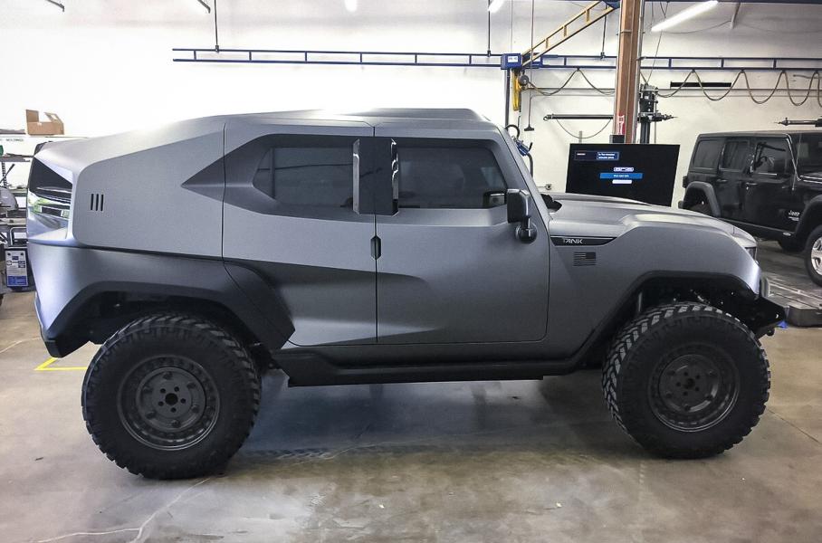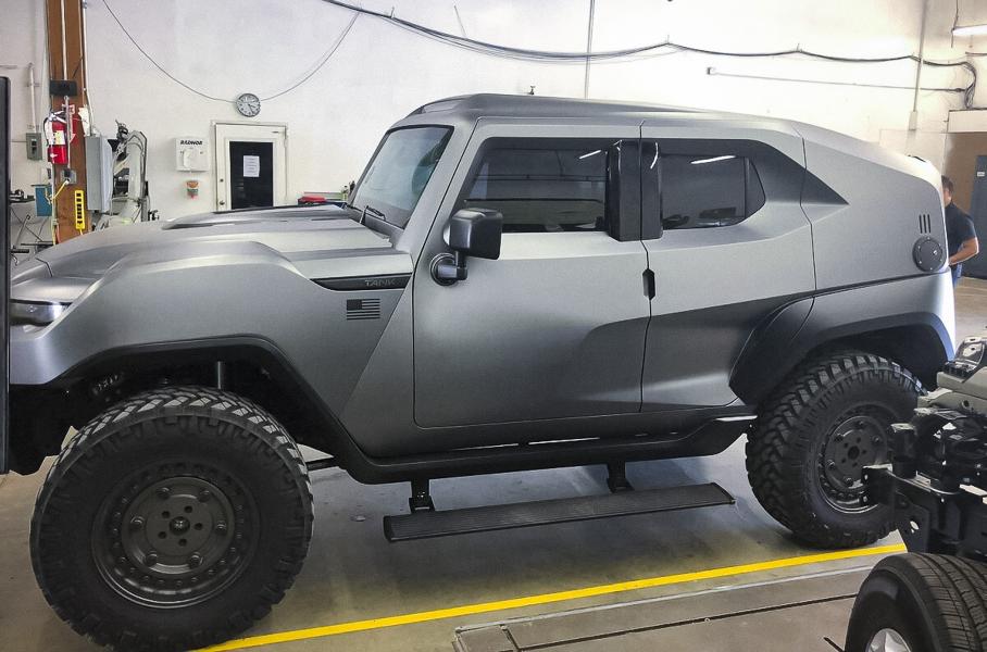 Аналогичная машина есть в автопарке американского шоумена XzibitRezvani Tank построен на базе серийного Jeep Wrangler 2019 года. Внедорожник оснащен броней класса B7, которая способна выдержать выстрел из СВД патроном калибра 7,62x51 НАТО со стальным сердечником с расстояния десяти метров. Кузов машины выполнен из кевларовых панелей, которые дополнены пуленепробиваемыми стёклами, а также защитными пластинами на днище и изолированным бензобаком. Кроме того, модель способна противостоять химическим атакам, а также обладает системой противодействия электронному сканированию.