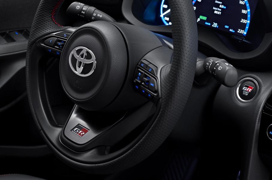 Визуально Yaris Cross GR Sport выделяется задним диффузором и сеткой в «передке» с логотипом GR. Колеса — 18-дюймовые, с машинной обработкой лицевой поверхности и десятью спицами. Фирменный цвет спецверсии получил названием Dynamic Grey, и его можно сочетать с глянцевой черной крышей и стойками. Меж тем внутри установлены спортивные кресла с серой обивкой и красной прострочкой, а за доплату доступны кресла GR Sport c отделкой искусственной замшей Ultrasuede.