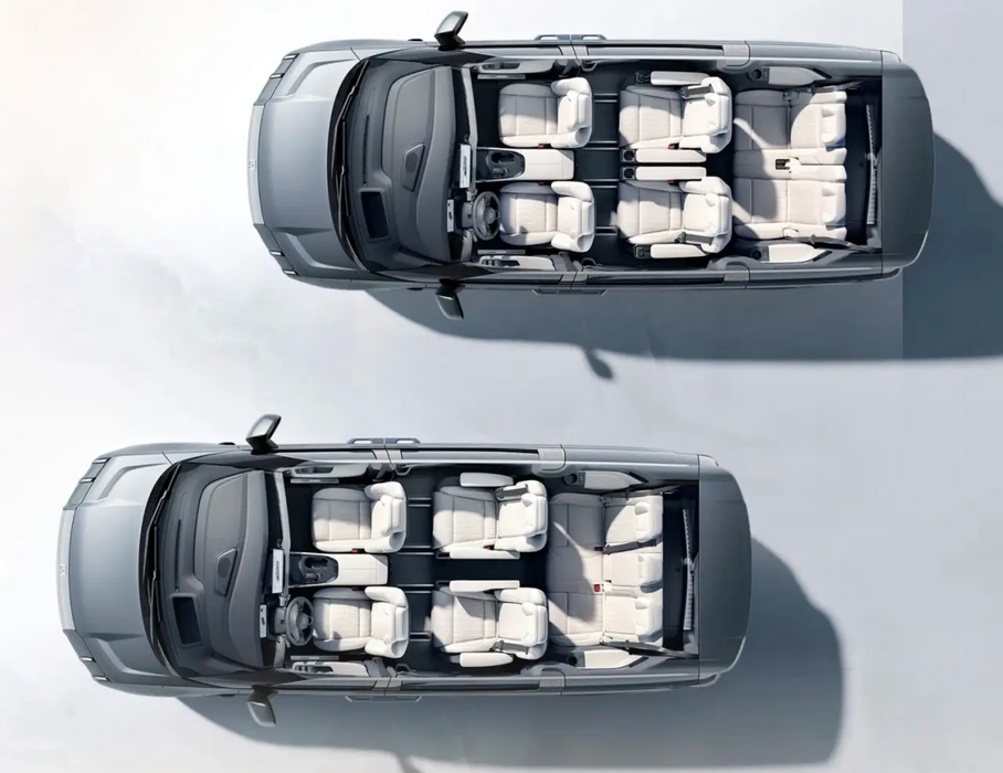 Обновление добавило в гамму «семейный» семиместный вариант с компоновкой сидений 2+2+3. Здесь на среднем ряду есть проход, что делает более удобной посадку и высадку задних пассажиров. Также в оснащение вошли дисплей дополненной реальности диагональю 35,95 дюйма, отсек для беспроводной зарядки смартфона, особо комфортные передние кресла и холодильник.