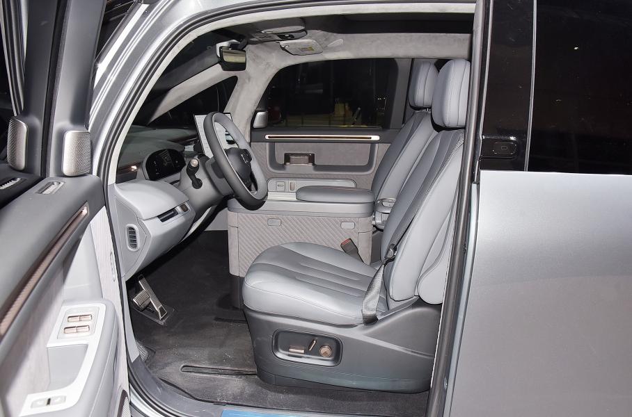Ширина проёмов поражает: без малого полтора метра (1480 мм), что сравнимо с полноразмерными минивэнами! При этом сам Zeekr Mix отнюдь не гигант: длина кузова всего 4,69 метра. В салоне диван сдвинут к задней оси, центральный подлокотник со столиками может сдвигаться продольно в угоду удобству и передних, и задних седоков. А передние кресла способны поворачиваться на 90 или 180 градусов, то есть в кроссвэне легко организовать настоящую гостиную!