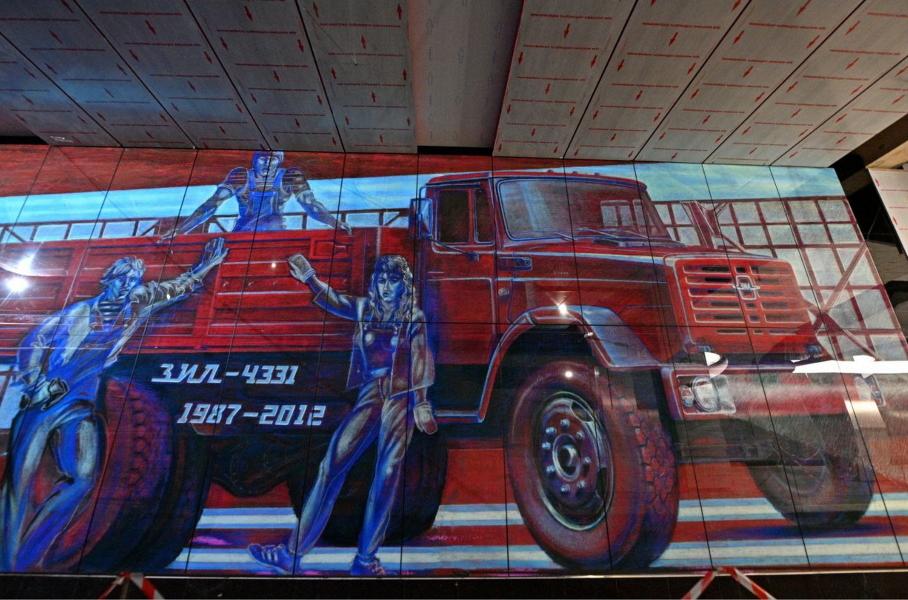 В московском метро появилось 45-метровое панно с грузовиками ЗиЛ: фото