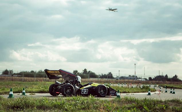 Вживую студенческие болиды интересно звучат и неплохо едут. А вот пилоты (тоже члены команды) то и дело ошибаются – машину срывает в занос, время теряется. Один из гонщиков даже "запорол" неплохую "восьмерку", решив красиво завершить дистанцию в управляемом скольжении. В общем, где-то участникам мешали элементарные ошибки, где-то подводила техника. В любом случае, у испытателей было время потренироваться на треке в специально отведенное для этого время.