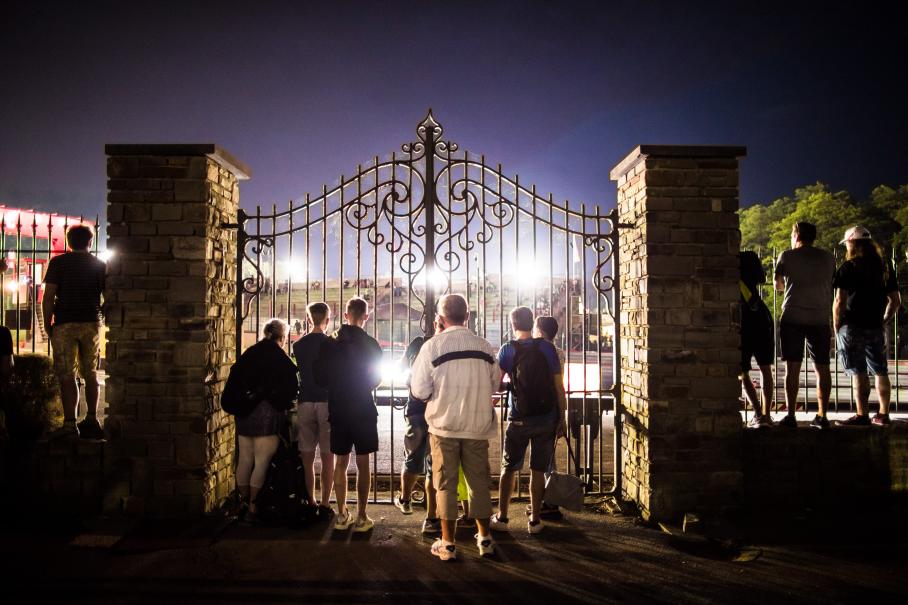 Босс команды, Малкольм Уилсон, стоит в боксе на пустой бочке с горючим, наблюдая, как механики обслуживают машину на пит-стопе, привнося в мир кольцевых гонок немного раллийной непосредственности.