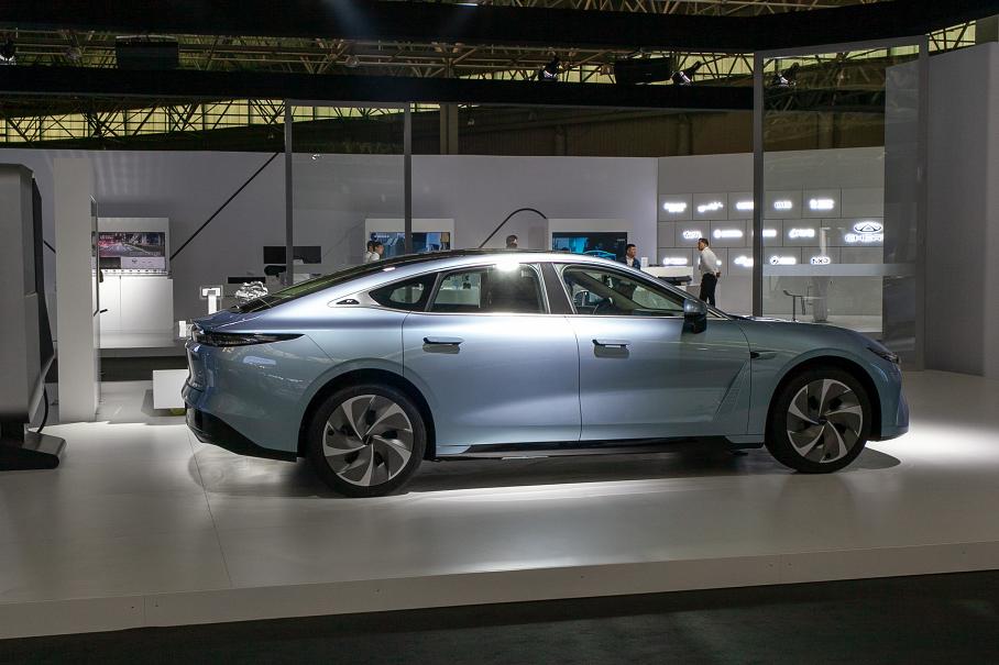 Exeed Exlantix Е03 выглядит так, будто он собирается закусить Теслой Model S. Электрический седан всего 6,5 см недотянул до пяти метров.