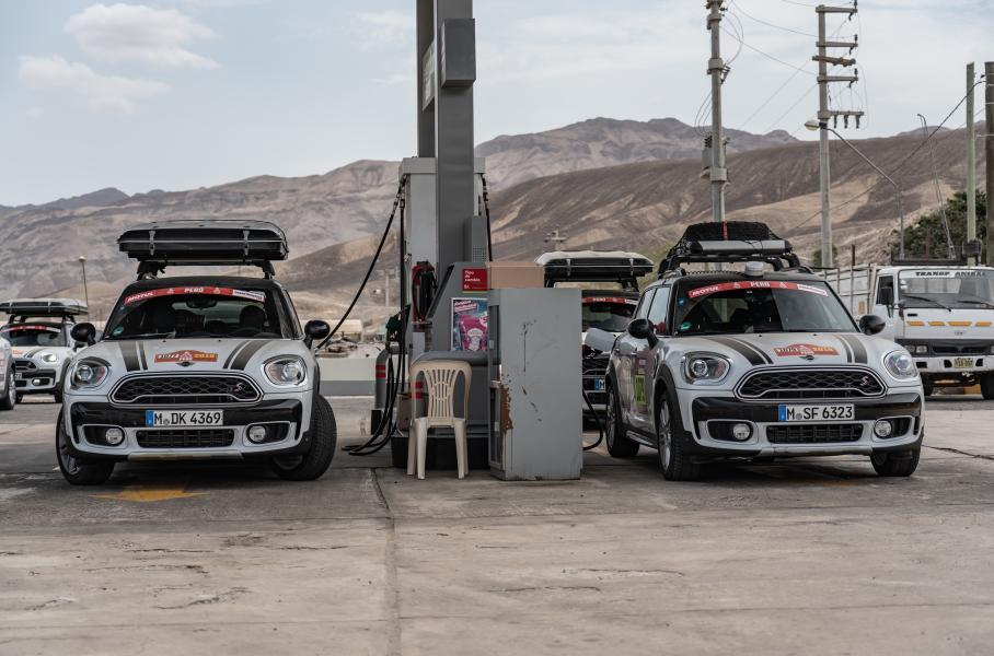 Дизельные MINI Countryman S на несколько дней стали для нас не только средством передвижения, но и домом. На крыше — двухместная складная палатка производства Autohome. На этих автомобилях мы проехали более 1500 километров по пескам провинции Наска, серпантинам Паракаса и прибрежным дорогам Перу.