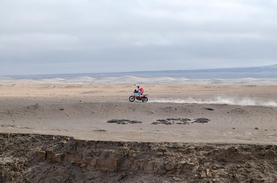 «Дакар» вживую — совсем не то, что показывают по телевизору. Сначала слышен звук, потом видны клубы пыли, и только после этого показываются гонщики. Они молниеносно проносятся мимо и исчезают за ближайшим холмом. Но даже это секундное действие захватывает. Из-за особенностей маршрута на седьмом этапе мотоциклы и квадроциклы едут по противоположному краю каньона и его руслу, а внедорожники — только по руслу. Внезапно начинается песчаная буря, и на этом для нас, как зрителей, гонка заканчивается. Возвращаемся на бивуак.