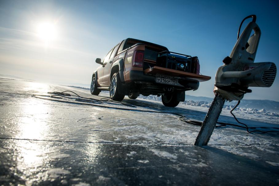 Кстати, заезды проходят по природному льду, и работа по подготовке сводится к заливке небольших трещин и углублений, срезанию фрезой ступенек и неровностей и удалению переметов и торосов по бокам от трассы, чтобы не допустить подброса или переворота автомобиля, вылетевшего с рекордной дорожки.