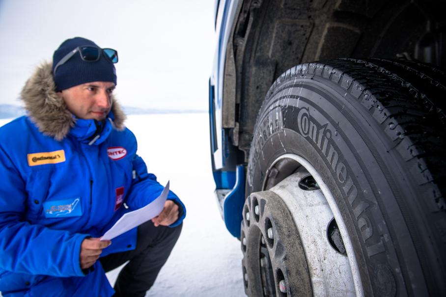 Но самое интересное произошло во время экспериментальных заездов на минимальную длину тормозного пути на льду. В лучшей попытке Илоне понадобилось всего 169 метров, чтобы остановить тягач со скорости 80 километров в час. Прекрасная работа пилота, совершенной электроники Ford F-max и, в первую очередь, зимних грузовых шин Continental.