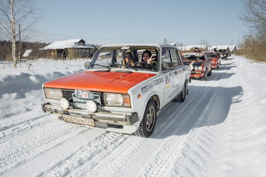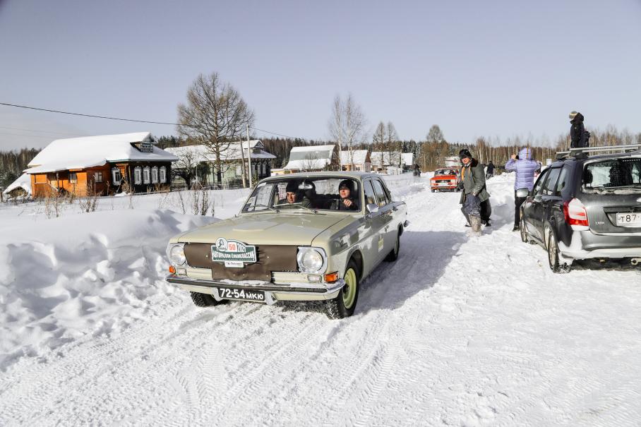 Вообще, несмотря на «игрушечный» темп, испытаний для автомобилей хватает. Для начала — завестись в мороз минус 20. Потом согреть салон и разморозить стёкла — в старых машинах системы терморегуляции двигателя и отопления требуют куда больше внимания, чем в современных. Особенно весело по незнанию: я имел дело с разными ретрокарами, но это не помогло мне в предстартовой спешке моментально разобраться с климатом и органами управления Волги 1974 года. Поэтому часть пути иней с лобового стекла я соскребал кредиткой.