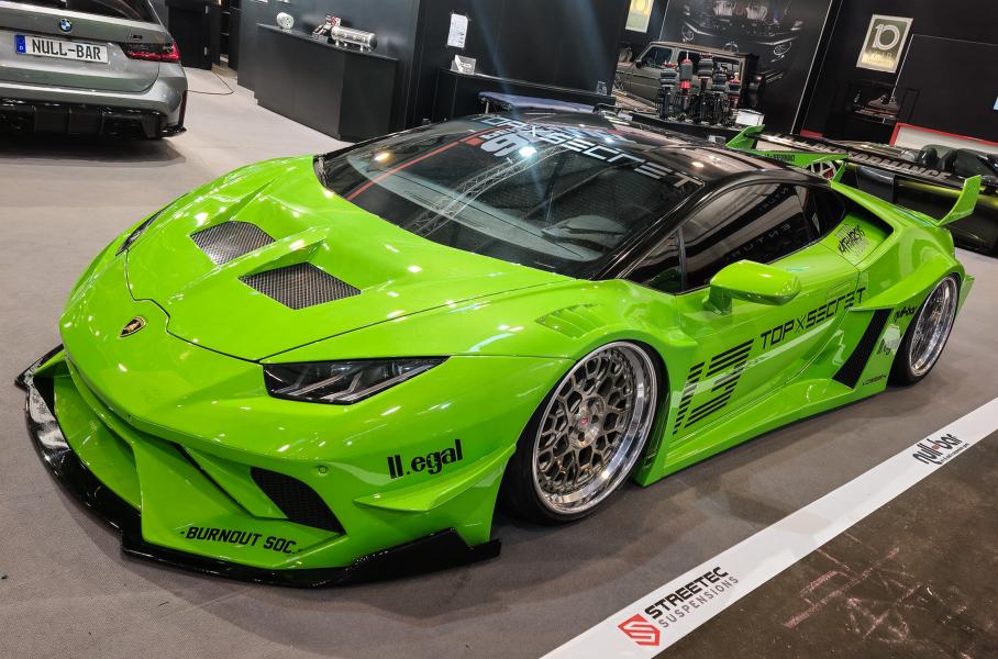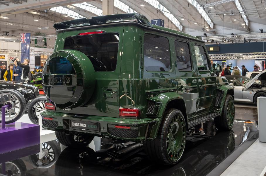 Какой же Эссен без Брабуса? Вот и на этот раз всемирно известное ателье из Боттропа выставило пять машин и один мотоцикл. Самый эффектный из которых — пожалуй, вот этот «гелик» под названием Brabus 800 Mean Green. Главная фишка «плохого зелёного» — то, что все наружные детали и весь салон выполнены в различных оттенках зелёного колера: не стали исключением ни 24-дюймовые колёса Monoblock M «Platinum Edition», ни углепластиковые накладки снаружи и внутри.