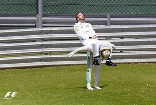 Во время квалификации Мэтт Галлахер из сетевого издания WTF1 написал буквально следующее про Алонсо: «Если он пройдет в Q3, я прыгну с парашютом». Разумеется, через несколько минут комментарии взорвались ироничными напутствиями.