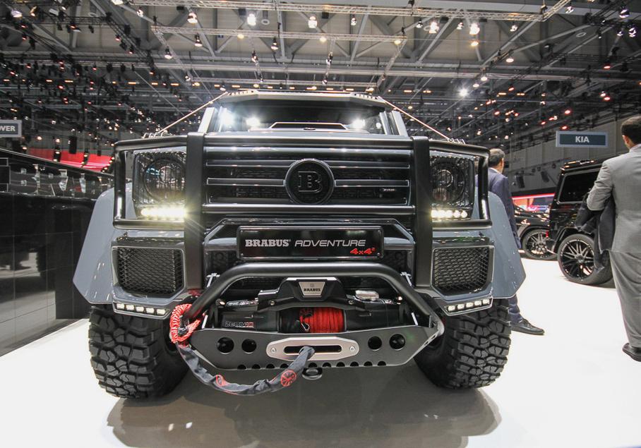 Этот автомобиль называется Brabus 550 Adventure 4×4². Внедорожник оснастили «кенгурятником» с защитой фар, лебедкой, дополнительной светотехникой на крыше и запасным колесом на двери багажника. Мощность турбомотора V8 возросла с 422 до 550 сил. «Сотню» этот монстр набирает за 6,7 секунды. Максималка из-за внедорожных шин ограничена 210 километрами в час.
