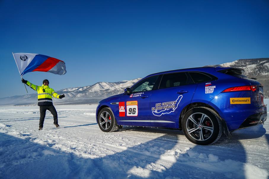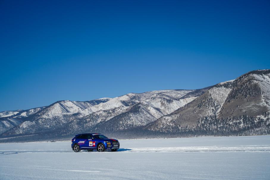 Еще на Байкал привезли Jaguar F-Pace с 3,0-литровым турбодизелем, развивающим крутящий момент 700 Нм. Помимо попыток установления рекордов для дизельных машин, этому автомобилю предстояло участвовать еще в одном эксперименте — замерах тормозного пути на голом льду со скоростей 60, 80, 100 и 200 км/ч.