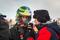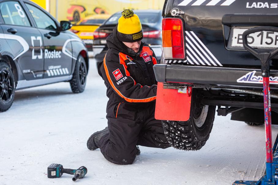 Нововведение этого года — переход на отечественные шины. Опытные участники рассказали, что они немного медленнее привычных Pirelli, но «перворазников» впечатляло практически асфальтовое сцепление этих «гвоздей» с ледовым покрытием, в которое им было так сложно поверить вначале. Второй проблемой новичков стала необходимость тотального слома инстинктов — чтобы оставаться на намеченной траектории, ни в коем случае нельзя отпускать газ или корректировать занос рулём. Силу техники управления «руль внутрь, газ в пол» я на собственном комбинезоне хорошо ощутил ещё год назад.