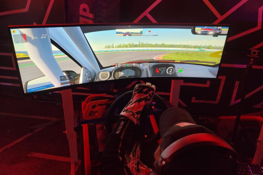 Симуляторная часть заездов проводится на игровом оборудовании профессионального уровня в игре Assetto Corsa Competizione. Оно состоит из мощного игрового компьютера, изогнутого монитора с огромной диагональю и кокпита-каркаса, на котором смонтирован гоночный ковш и руль с педалями. Стоимость такой сборки легко превышает полмиллиона рублей, что примерно вдвое дороже 9-сильного карта, который используется для тренировок и гонок в клубе MIKS Karting.