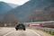 Местные экипажи ДПС выезжают не на патрулирование, а как будто на охоту, а тут впереди целый Lamborghini на московских номерах! Кроме того, дорога петляет, и мы будто не едем, а что-то вышиваем вокруг ровной струны железнодорожного полотна. Подныриваем в тоннели и оказываемся то справа, то слева. Максимум, что нам удалось — не потерять поезд из виду, пока наши дороги не разошлись. Уверен, на равнине и на шоссе мы бы отыгрались. Тем более что конечный пункт — аж Московский вокзал Санкт-Петербурга.