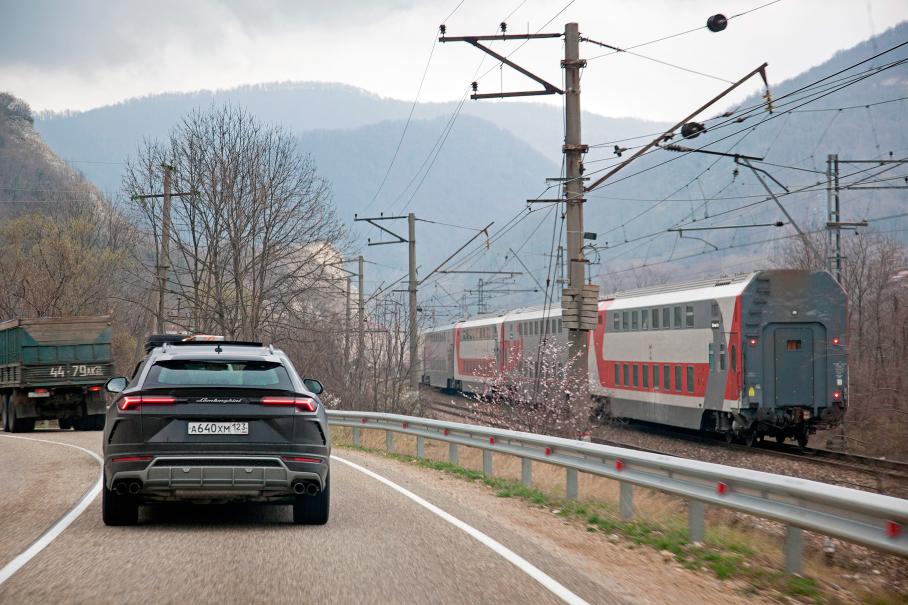 Двухэтажный поезд Адлер — Санкт-Петербург покидает Туапсе и побережье Чёрного моря. На пути в Краснодар наши дороги пересекаются. Казалось бы, что сложного догнать поезд на Урусе — 650-сильном суперкаре для пересеченной местности? Например, сохранить водительские права. Ограничение «40», километры сплошной разметки, тихоходы впереди и как вишенка на торте — полицейская машина на хвосте.