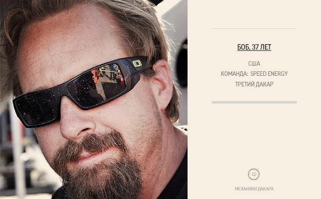 Боб приехал в Южную Америку из Калифорнии с командой Робби Гордона. В 2008 году собирался поехать на африканский "Дакар", но юбилейную, тридцатую гонку тогда отменили...