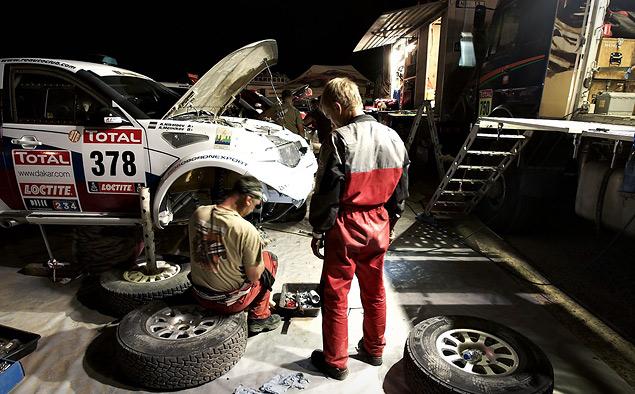 Механики используют любую возможность отдохнуть. Среднее время их сна во время "Дакара" -- меньше трех часов в сутки.