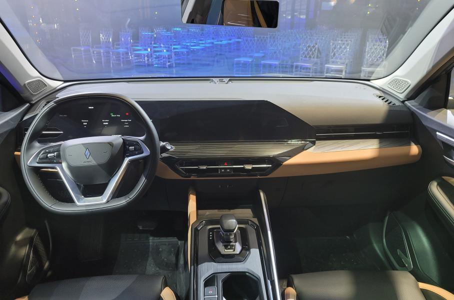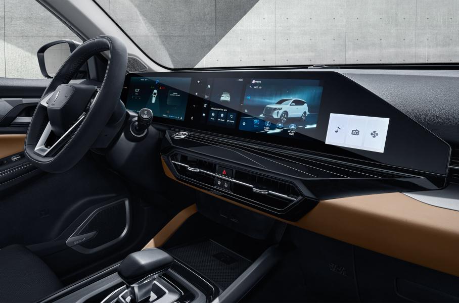 Ещё одна крупная общая деталь, роднящая две модели, — это передняя панель в салоне. Информационный блок объединяет два крупных дисплея и один небольшой дополнительный. Функциональность последнего пока не до конца ясна, но на фотографии можно увидеть пиктограммы мультимедийных приложений и климат-контроля. Концептуально это напоминает модели Changan, а об удобстве решения будем судить после тест-драйва.