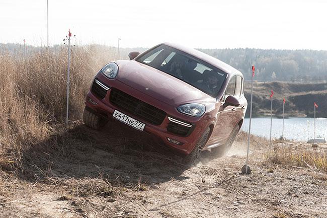И как классно он проходит «змейку»! После него «лосиный тест» с полным торможением на 570-сильной глыбине Cayenne Turbo S кажется пыткой. Проходить на нем это упражнение – все равно что спускаться по горному серпантину на Mercedes-Benz G63 AMG или (предположим, вы поверили, что мы так делали) находиться внутри мчащейся огромной деревянной катушки для проводов. Поэтому на «Кайене» мы переместимся на бездорожье. Тем более, что управлять придется, пожалуй, самым эффектным, не считая синего Macan Turbo, автомобилем этого теста – салатовым Cayenne S. Если что, он очень понравился девушкам, работающим на MRW.