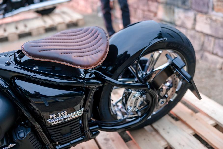 Вообще, в этом году на Pure & Crafted — засилье проектов на базе R 18: кастомайзерам явно пришелся по вкусу новый круизер! Еще бы: двигатель объемом 1802 «кубика» сделан максимально олдскульно, рама классическая дуплексная, а сама конструкция выполнена так, чтобы ее было максимально удобно переделывать.