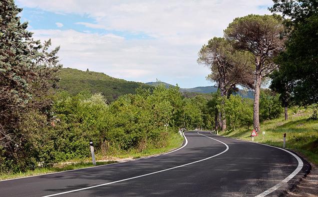 Трасса SS222 или Via Chiantigana тянется на протяжении 60 километров от Флоренции до Сиены через холмы Кьянти. Здесь, пожалуй, единственное место в Европе, где совершенно не огорчают ограничения скорости. Даже если бы власти завесили всю трассу знаками «20».