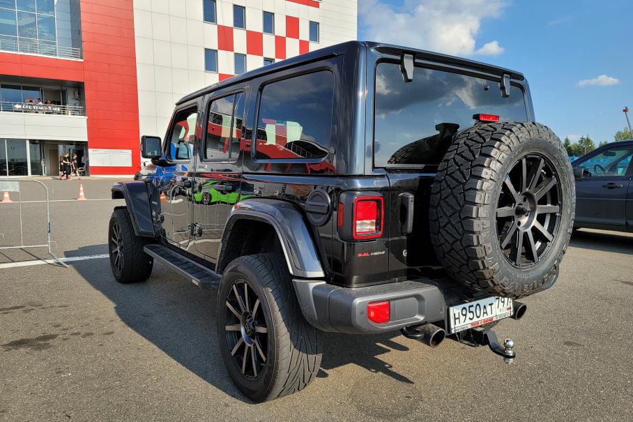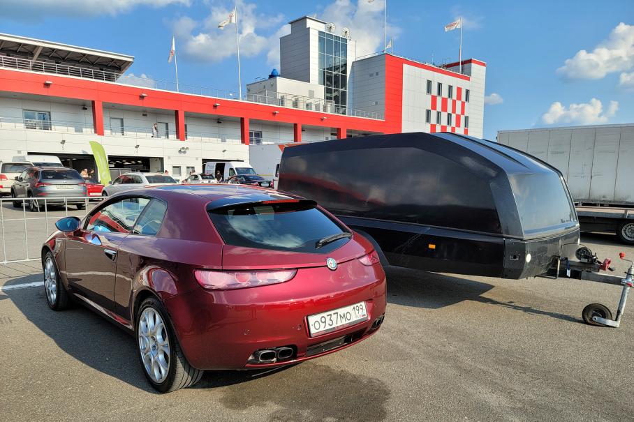 Самые интересные машины паддока. Обратите внимание, например, на шины внедорожника Jeep Wrangler 6.4 HEMI. А также на внезапное сходство форм Alfa Romeo Brera с запаркованным рядом прицепом