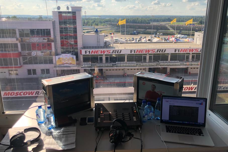 На трассе Moscow Raceway однажды работал из кабинки, расположенной на главной трибуне. Это железная будка, в которой или очень холодно, или очень жарко. Зато открывается вид на дальние повороты трассы и даже Волоколамск