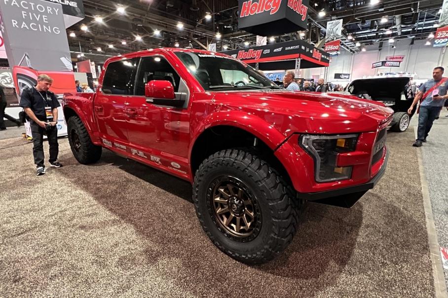 Яркий кастом-пикап Honda Ridgeline красовался на стенде «масляного» бренда Pennzoil. Хотя мы не уверены, уместно ли называть пикапом машину, построенную совместными усилиями ателье Hoonigan Кена Блока и гоночного подразделения Honda Performance Development. В реальности это своего рода «кентавр» — передняя половина серийного грузовичка срощена с задней частью от гоночной «формулы» серии IndyCar. Теперь понятно странное название проекта «IndyTruck»? Всё это связано воедино при помощи пространственной рамы из стальных труб.