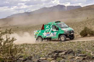 Эдуард Николаев на третьем месте в семи минутах от белорусского экипажа. Оба ГАЗ Садко Next на финише, хотя для них день выдался достаточно сложный. Грузовик Михаила Шкляева после штурма одной из острых дюн лишился полуоси. Экипаж устранил поломку, но уже через 5 километров им весьма кстати пришлась помощь сокомандника Владимира Моисеева, который помог выбраться из песчаной ловушки. А далее оба экипажа в хорошем темпе успешно добрались до финиша.