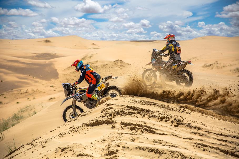 — У меня возникла проблема с мотоциклом — он промок в реке, вода попала в двигатель, — рассказал Мурун Пуревдорж — Застрял где-то на час и пытался выяснить проблему, пытался избавиться от воды, что потребовало времени, но в итоге продолжил гонку. Трасса хорошая, дюны — отличные. Стараюсь атаковать и не терять времени.