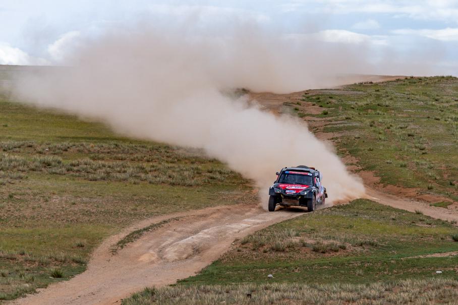 — Спецучасток был длинный, и я рад, что перегон из Алтая в Баянхонгор шел по степи, где мы могли ехать под 170 км/ч, а не по дорогам общего пользования с ограничением 80 км/ч, — шутит штурман команды ГАЗ Рейд Спорт Евгений Павлов — 400 боевых километров! Прямиков, таких, что на десятки километров видна дорог. Прошли пару каньончиков, где-то пересекали каменистые русла рек… День оказался несложным для пилота, да и по навигации ничего особенного. На фоне песчаного вчерашнего дня, где пришлось много поработать, чтобы проехать эти 100 километров песков, сегодня день был «транзитный».