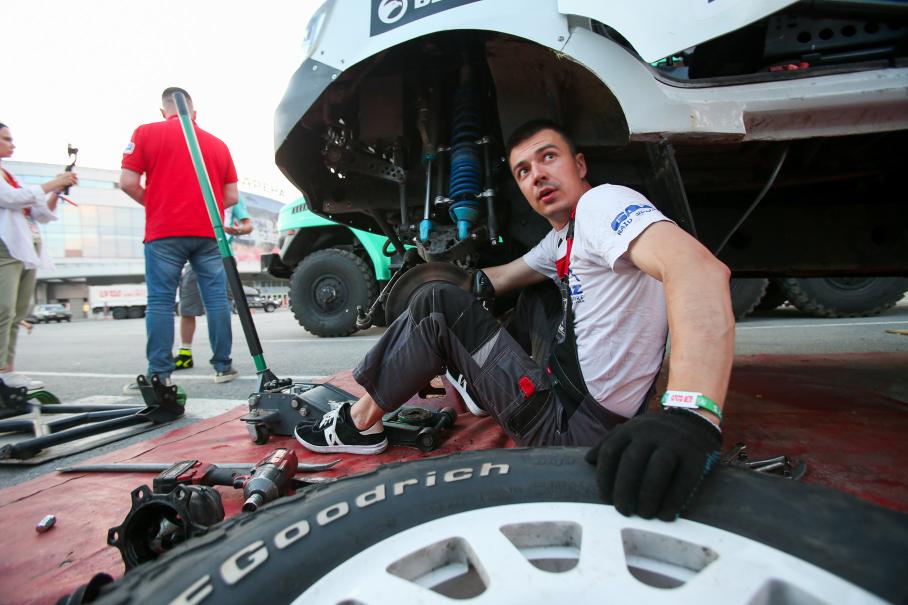 — Первый старт: день, можно сказать, разминочный, — отметил пилот команды ГАЗ Рейд Спорт Александр Русанов — Нужно осознать границы возможностей — и свои, и машины. Проверить верность внесенных изменений — все участники перед стартом колдуют над своими аппаратами.