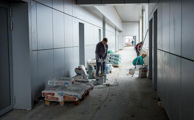 К началу Олимпиады строители должны полностью закончить подтрибунные помещения: на первом этаже пройдет выставка "Регионы России". Экспозиция откроется 7 февраля, но первые участники выставки приедут на месяц раньше