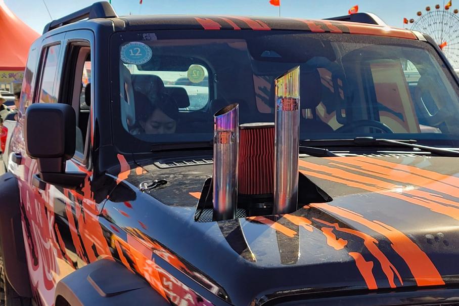 Интересно, как дело обстоит с доработкой двигателей, но открытых капотов на выставке не было. А жаль, ведь отдельной группой стояла целая дюжина внедорожников с форсированными моторами. Когда стемнело, они устроили огненное шоу, изрыгая пламя из смотрящих вверх подобно американским грузовикам выхлопных труб, а также выведенных прямо в капот скример-пайпов. Последнее особенно иронично смотрелось на Tank 400: гибрид, который с особым цинизмом напоказ сжигает ископаемое топливо.